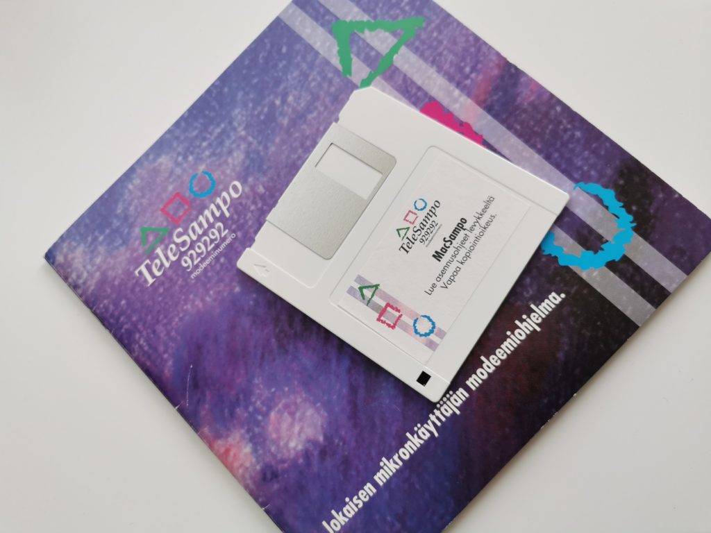 Tai oikeammin kaapin perukoilta löytyi tuulahdus ajalta ennen internetiä. Telesampo oli suomalainen maksullinen ”purkki” eli modeemin kautta käytettävä tietoliikennepalvelu. Tai niinkuin numerossa 929292 toiminut palvelu itseään aikoinaan mainosti: ”Jokaisen mikronkäyttäjän modeemiohjelma”. Suomessahan toimi tuolloin 80- ja 90-lukujen taitteessa monia yksityishenkilöiden ylläpitämiä purkkeja, joista sai ladattua omalle koneelleen sovellusohjelmia ja kuvia. Itsekin kuuntelin modeeminpiipitystä usein yömyöhään. AppleGarden taisi olla tuolloin yksi käytetyimmistä palveluista ja siinä oli jopa moderni FirstClass-yhteysohjelma, joka pesi mennen tullen pelkän päätteen kautta käytettävien purkkien käyttöliittymät.